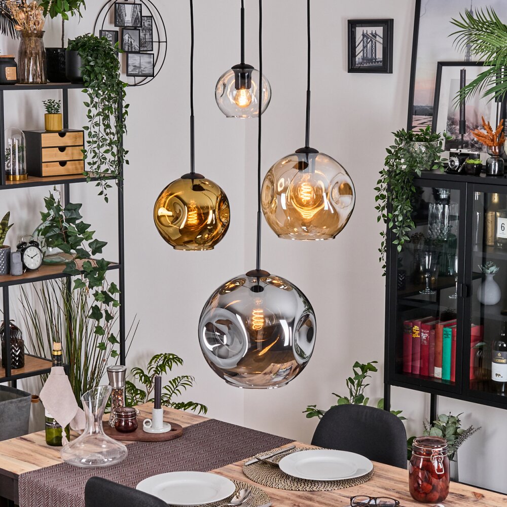Ripoll Lampadario a sospensione, Lampada a sfera, Lampada a sospensione a cluster Ambrato, Cromo, Oro, Chiaro, Grigio fumo, 4-Luci